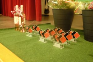 De clubkampioenen en 3 geluksvogels van de slotdrive werden verrast met een prachtige trofee, gemaakt door Gonda Bos. Hartelijk dank, Gonda!